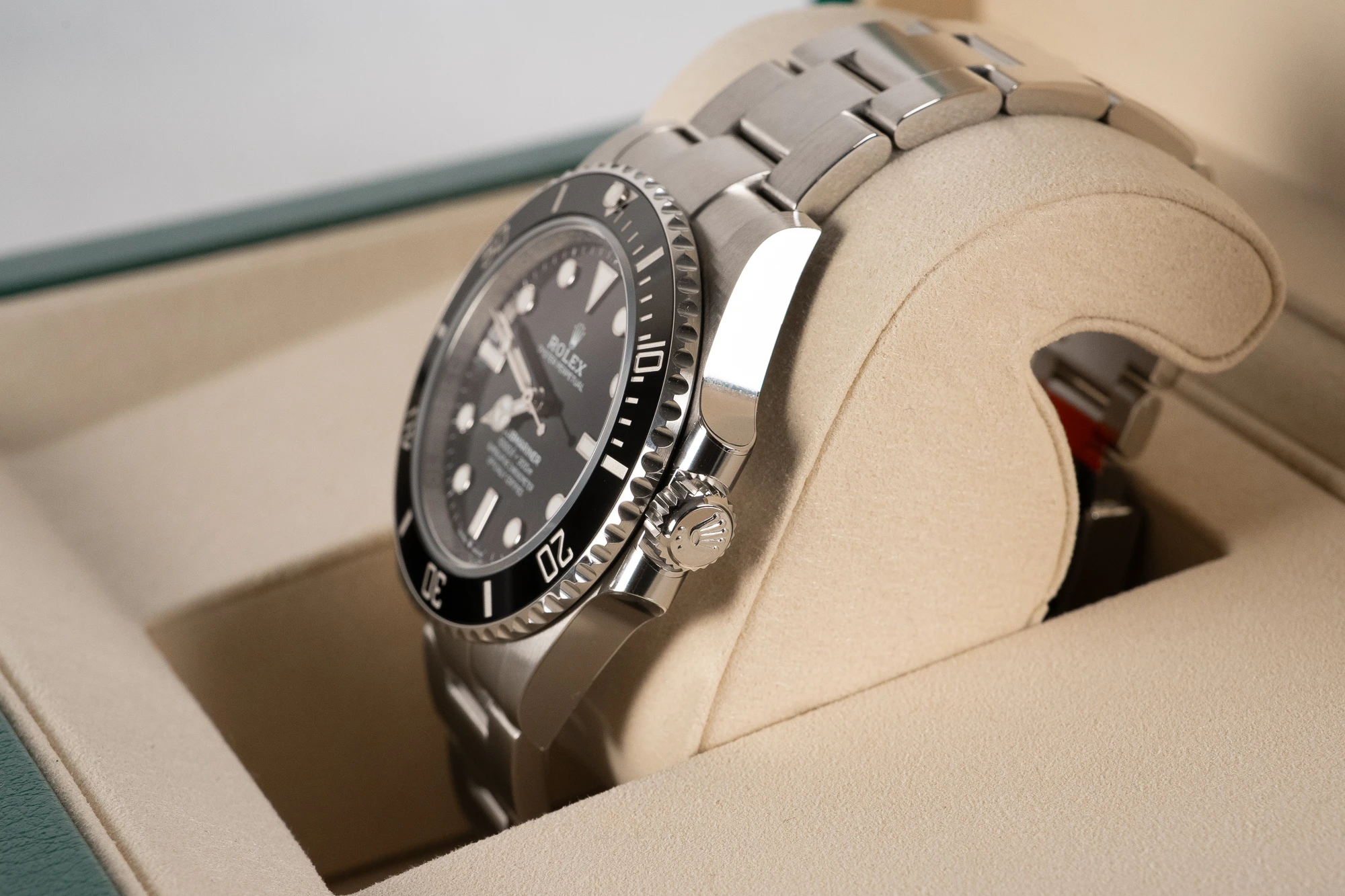 This 2025 Rolex Submariner “No Date”, reference 124060, keeps the original Submariner formula intact: a clean, dateless dial, black Cerachrom bezel and no-nonsense functionality.